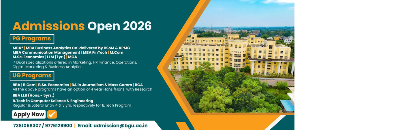 For admission into the BBA-LLB programme of BGU Bhubaneswar applicants with a valid *LSAT /CLAT/AILET/XLET / BGU Entrance Test score will be preferred.